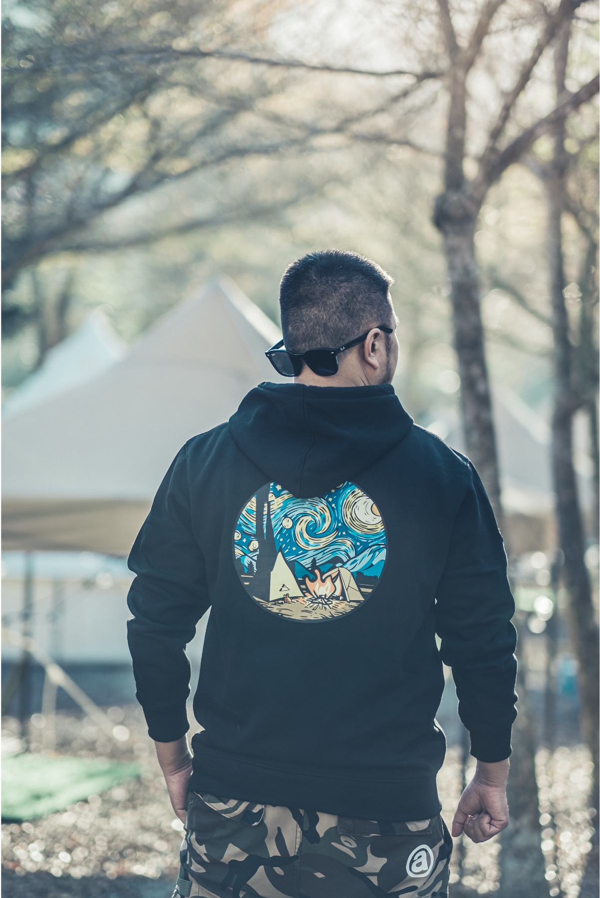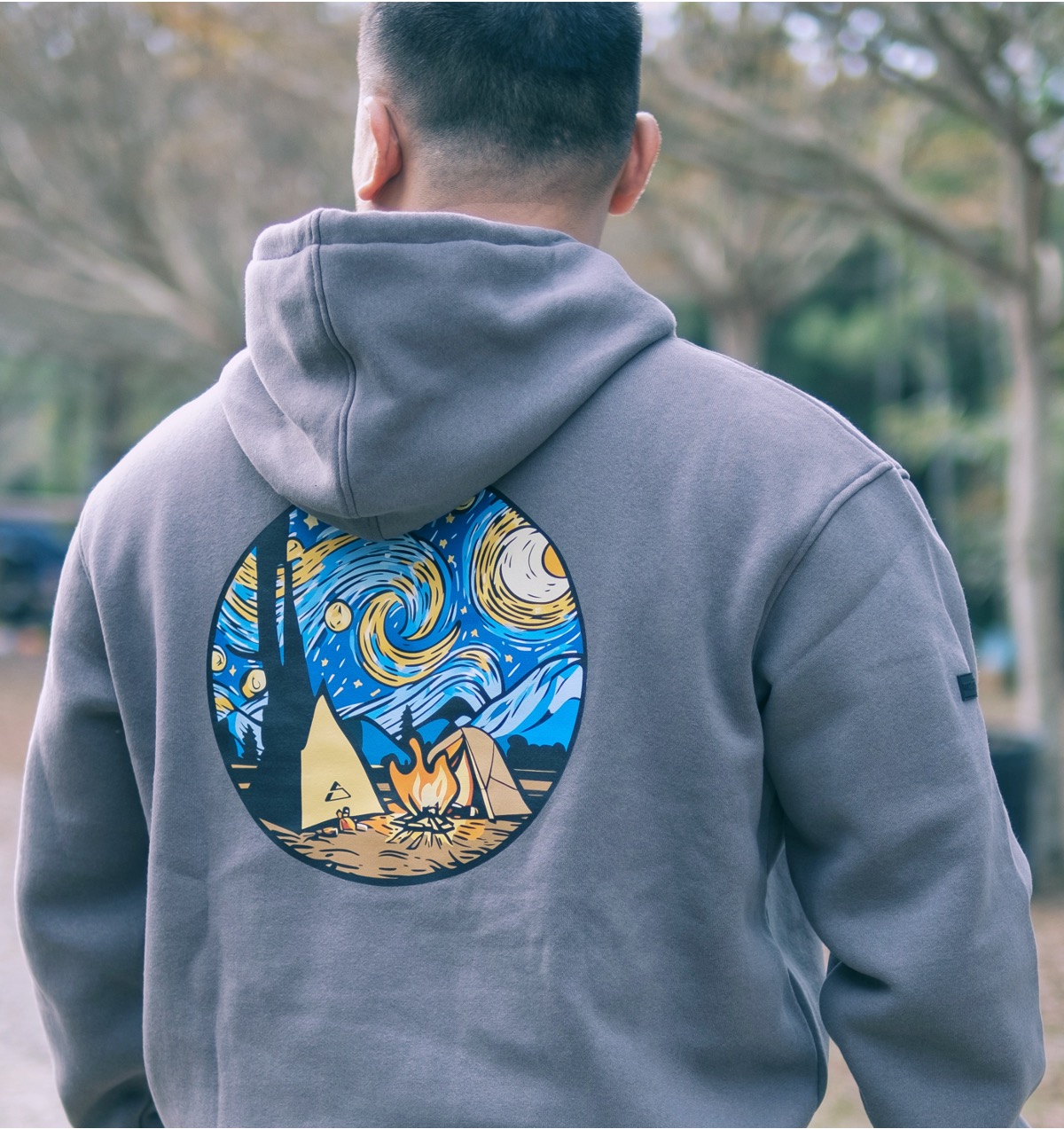 梵谷露營帽T 灰色