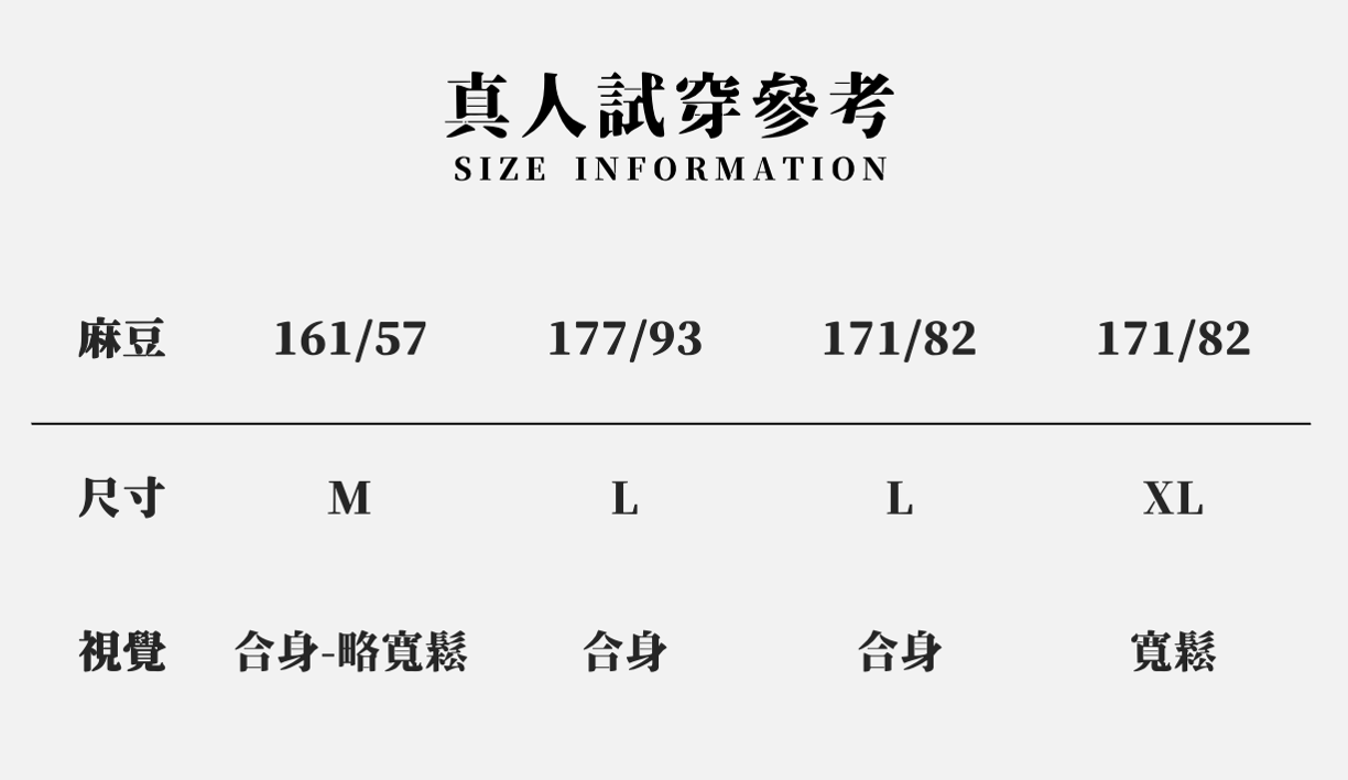 阿嘎:161cm / 58kg 穿M 合身~略寬鬆